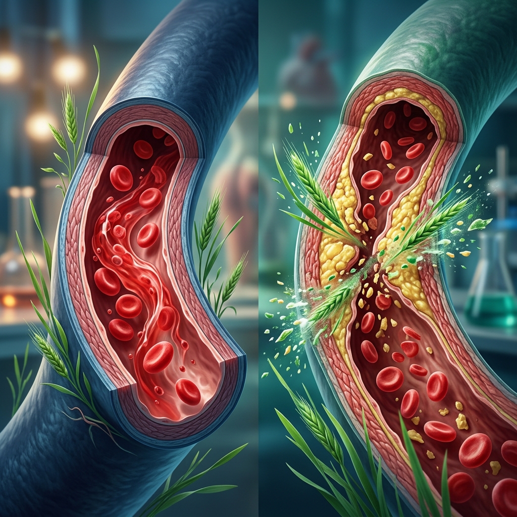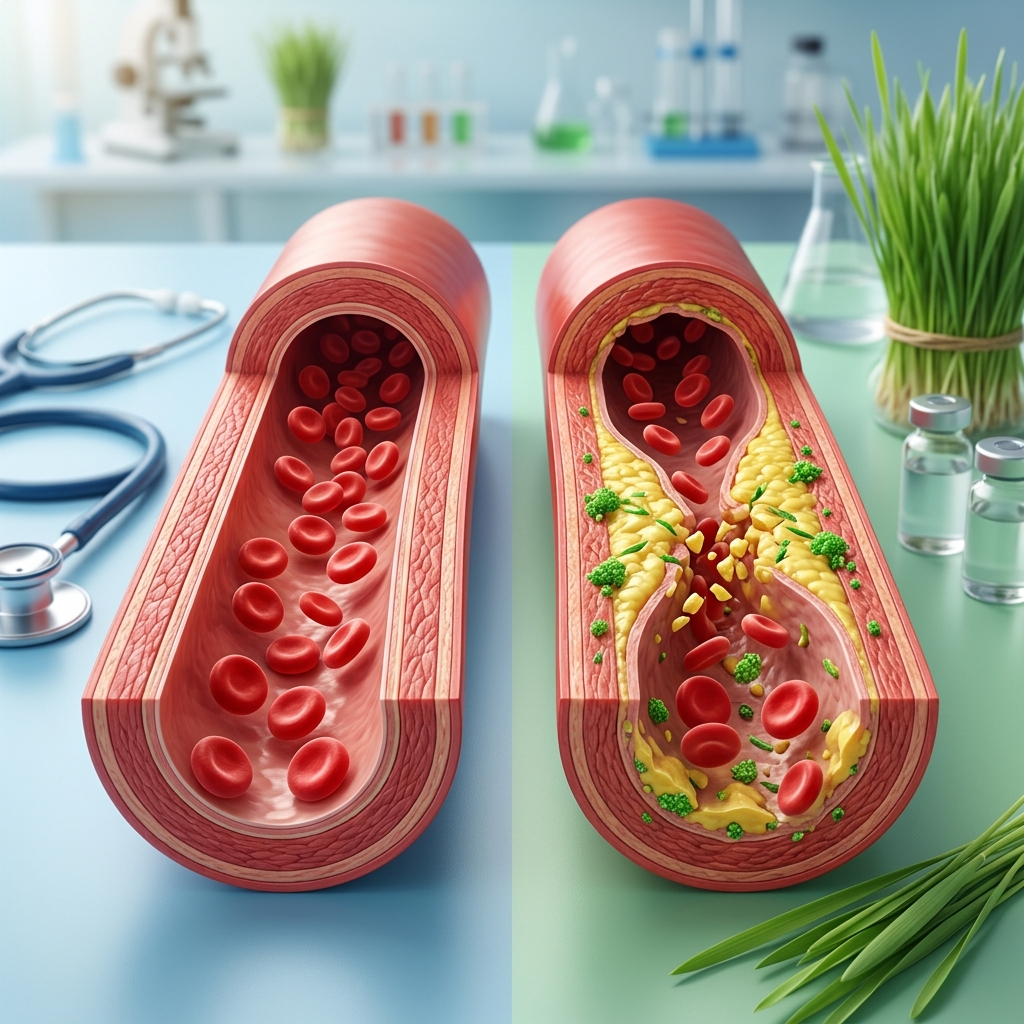 새싹보리 분말 효능 중 가장 핵심적인 기능은 바로 풍부한 폴리코사놀 성분이 나쁜 LDL 콜레스테롤 수치를 낮추고 혈관을 깨끗하게 청소해 주는 것입니다.