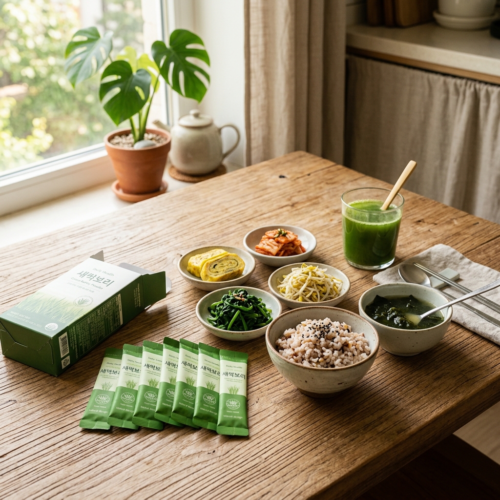 아무리 좋은 새싹보리 분말이라도 과하게 섭취하면 복통이나 설사를 유발할 수 있으므로, 하루 5~10g(약 1~2스푼)의 정량을 지키는 것이 가장 중요합니다.
