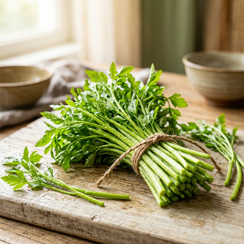 A: 미나리는 살짝 데쳐 먹으면 오히려 소화 흡수율이 높아지고 기생충 걱정도 덜 수 있습니다. 비타민 손실을 최소화하려면 끓는 물에 30초 내외로 빠르게 데치는 것이 좋습니다.