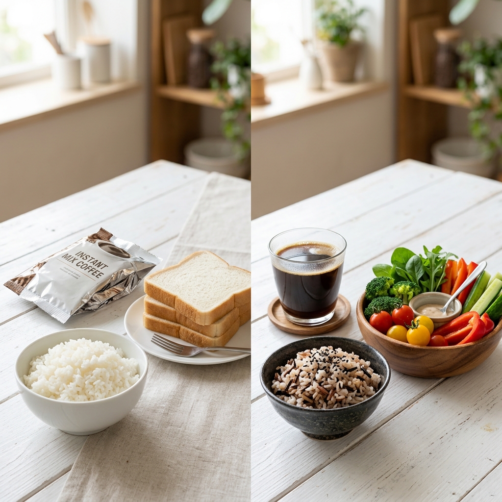 | 식단 조절 (중요도 1순위) | 밥/면 줄이기, 믹스커피 끊기 | 비만, 지방간 판정을 받은 분 |
