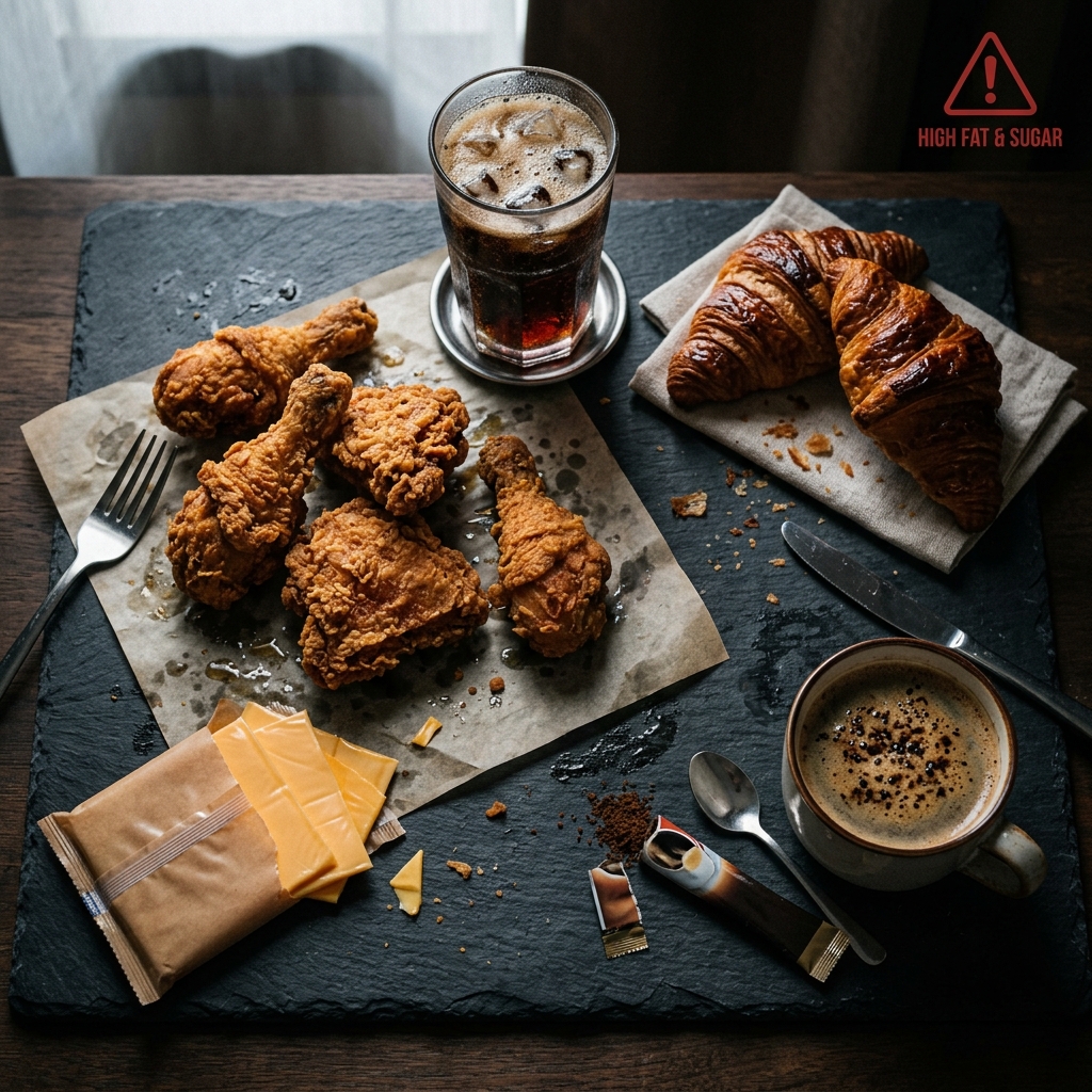 우리가 흔히 즐기는 빵, 과자, 믹스커피에 들어있는 트랜스지방은 혈관 건강의 최대 적이며, 설탕이 많이 든 음료는 중성지방 합성을 촉진해 피를 탁하게 만듭니다.